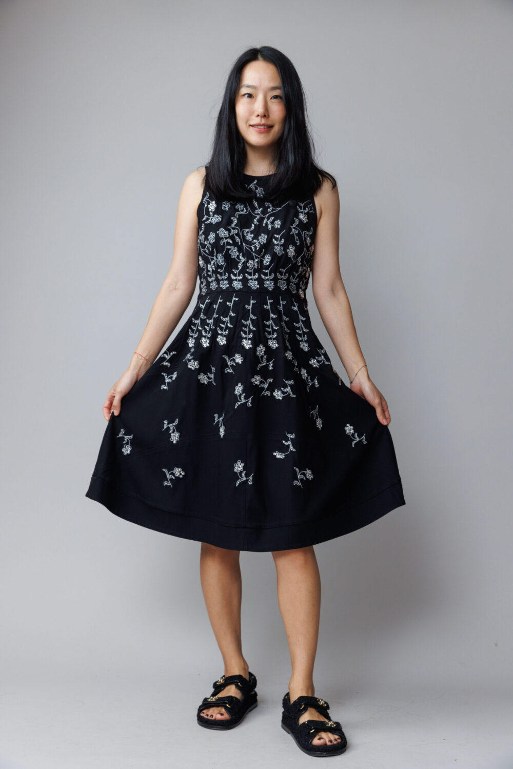ONE OF A KIND hand-embroidered lycra dress with Swarovski embellishments and a zipper on the back