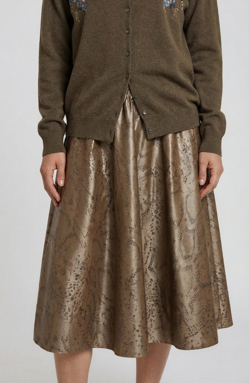 ONE OF A KIND Silk wallpaper skirt with a volume silhouette and a textured sheen, back pocket.