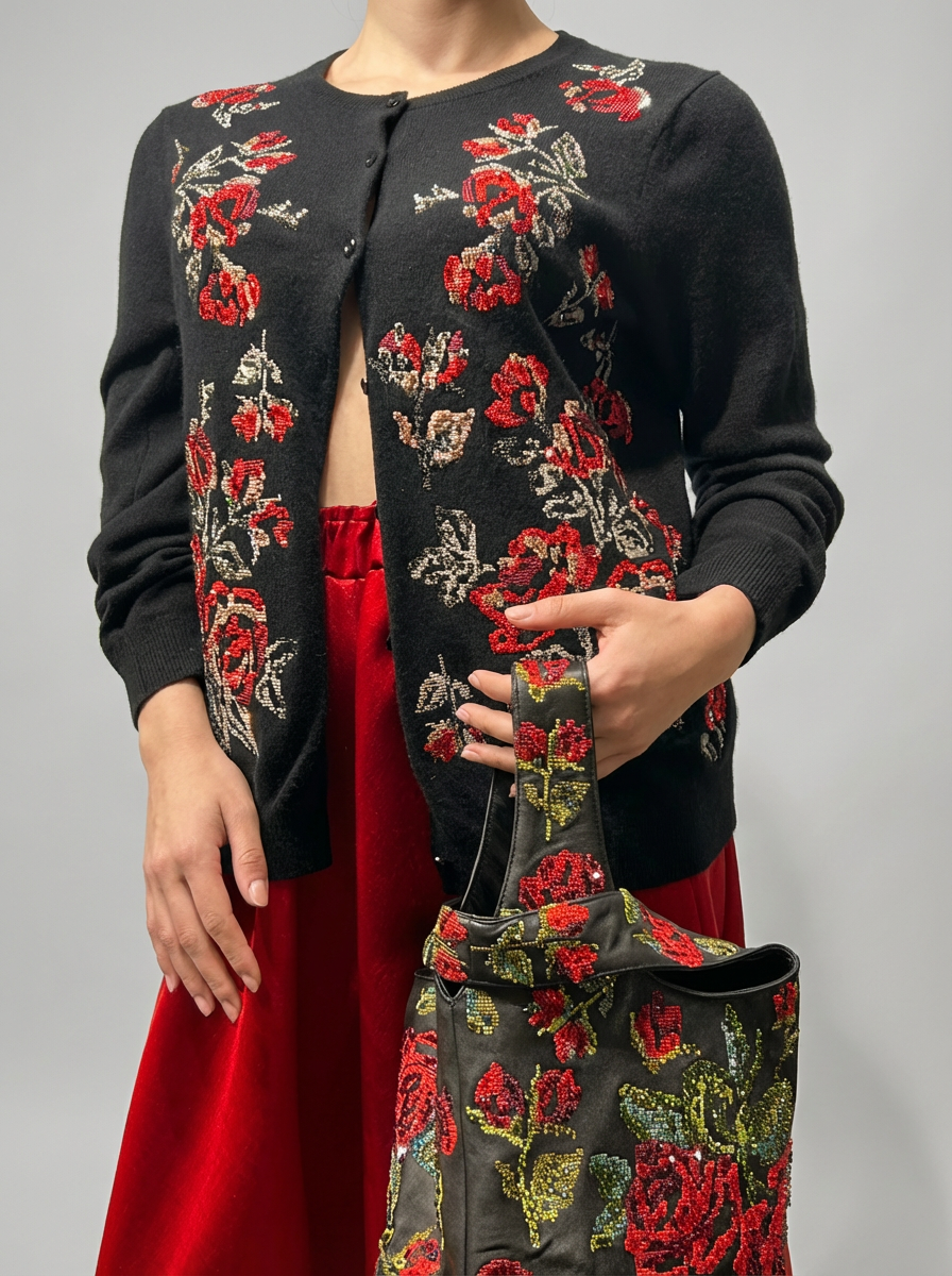 Wool cardigan with floral embroidery and Swarovski crystal detailing. size L